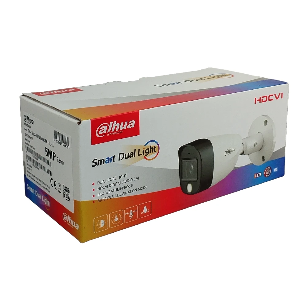 Cámara tipo bala de foco fijo HDCVI inteligente con luz dual de 5 MP
