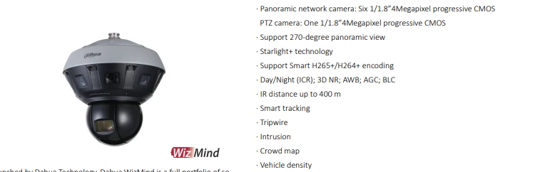 Cámara Hubble Dahua WizMind PTZ panorámica de 270° y multisensor de 24 MP DH-PSDW82442MP-A270-D440-DC36V-S3