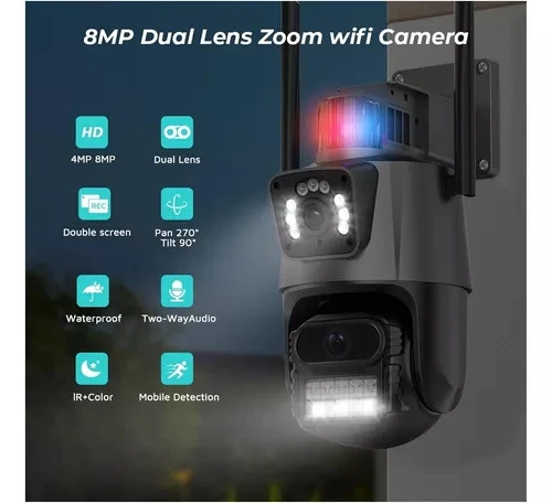 La Cámara IP de Seguridad con Doble Lente, Alarma y Resistente al Agua es un dispositivo de vigilancia avanzado que ofrece una protección completa para tu hogar, negocio u oficina. Equipada con dos lentes de alta definición, esta cámara proporciona una cobertura amplia y detallada de las áreas que deseas monitorear. Además, cuenta con funciones de alarma integradas que pueden detectar movimientos sospechosos o intrusos y enviar notificaciones instantáneas a tu dispositivo móvil para que puedas responder rápidamente.