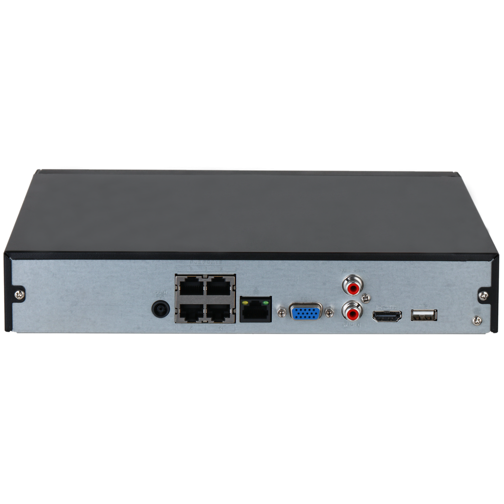 NVR 4Ch Dahua. 4 puertos POE. SMD PLUS. 1HDD de hasta 20TB. Audio In/Out. Alarma DHI-NVR2104HS-P-4KS3.